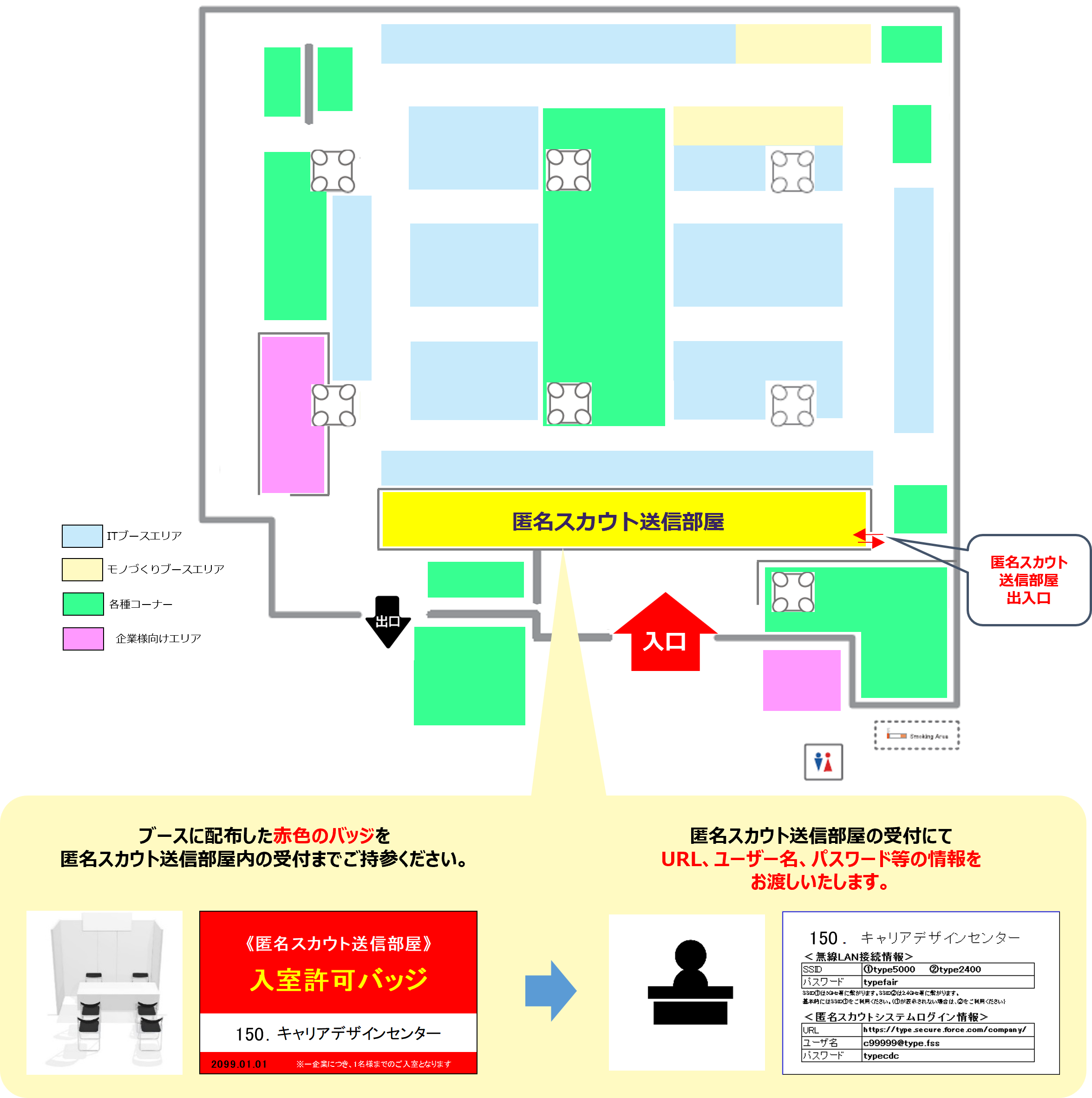 ※「入室許可バッジ」はあらかじめ企業ブースに配布しております。